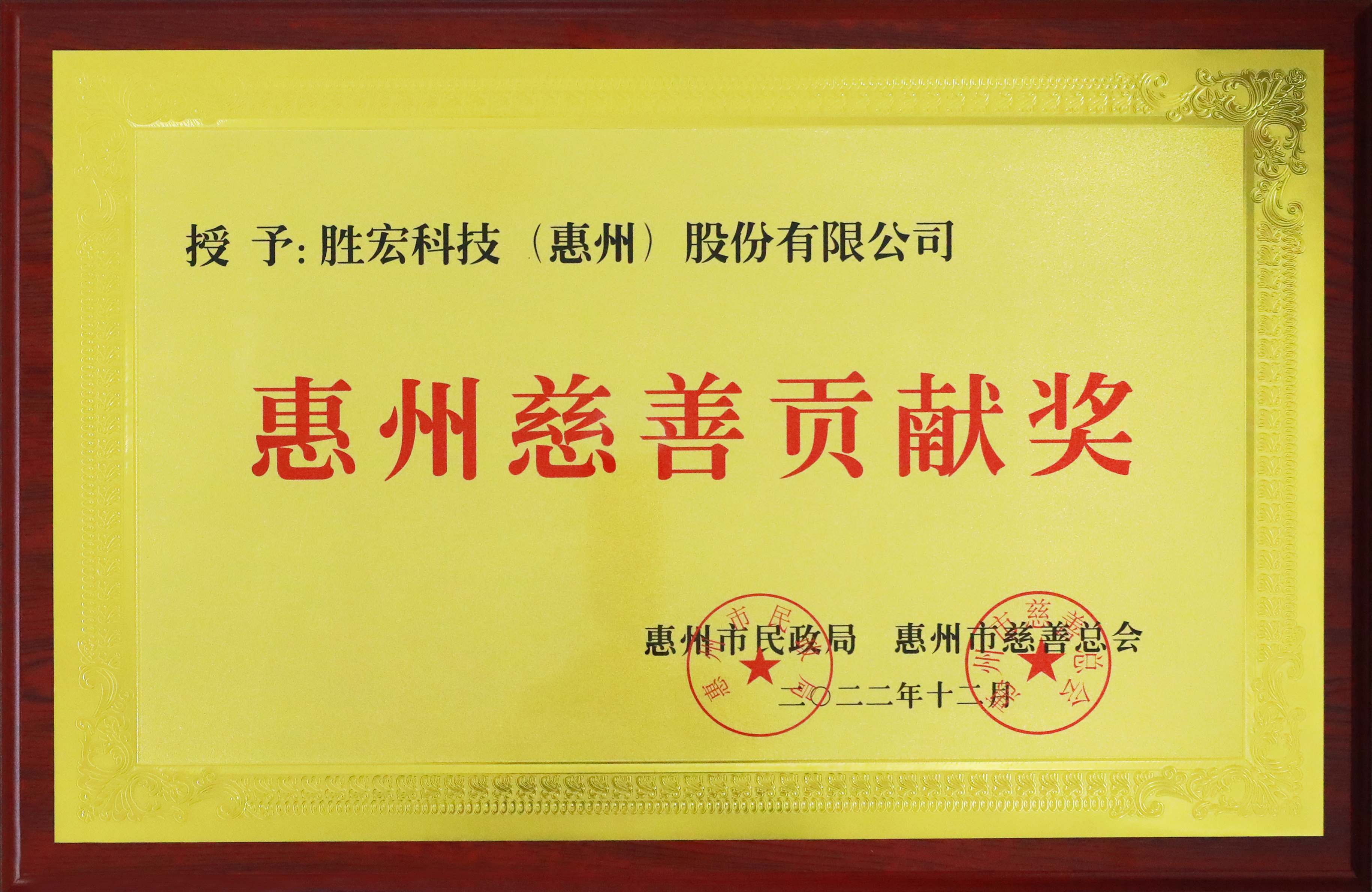 获得2022年惠州慈善贡献奖
